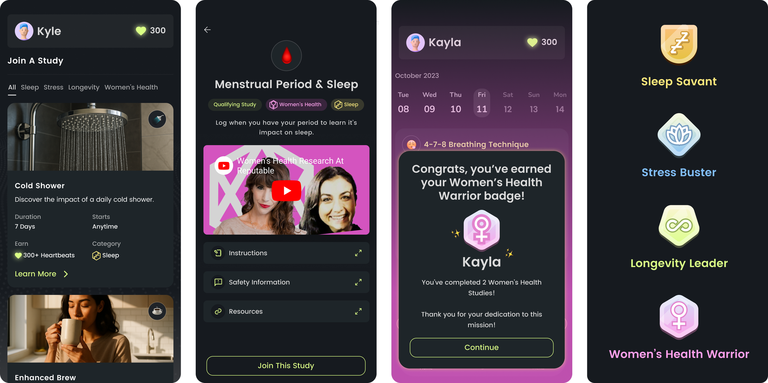 To improve study participation and daily compliance, we applied principles from behavioral design and gamification, using the Octalysis Framework as a strategic guide. Octalysis outlines eight core motivational drives—ranging from purpose and progress to ownership and unpredictability—that influence human behavior. By aligning our product experience with these intrinsic and extrinsic motivators, we transformed routine actions into meaningful, self-reinforcing habits. The following examples illustrate how we used visual storytelling, reward systems, and user choice to create a more engaging and mission-aligned experience.